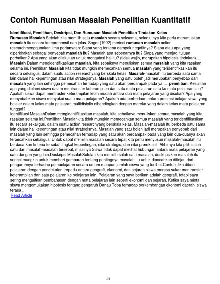 Contoh rumusan masalah pada bab pendahuluan di proposal maupun makalah anda tak hanya menjumpai latar belakang tetapi adapula rumusan masalah. Struktur kepenulisan secara singkat harus mempu menjawab metode penelitian yang dilakukan yaiu lebih dekat pada kajian sosial dengan hasil studi pustaka. Sama seperti jenis sub bab penelitian yang. Contoh proposal penelitian d. Misalnya dalam sebuah penelitian tentang lingkungan jika dalam merumuskan masalahnya saja tidak baik maka solusi yang didapat. Rumusan masalah adalah pertanyaan pertanyaan atas identifikasi permasalahan yang disusun berdasarkan latar belakang penelitian perumusan ini dilakukan guna menjawab konsep konsep yang ada di tinjauan pustaka sehingga dapat dikatakan membuat rumusan masalah diperlukan kejelian yang penuh dengan ketelitian.