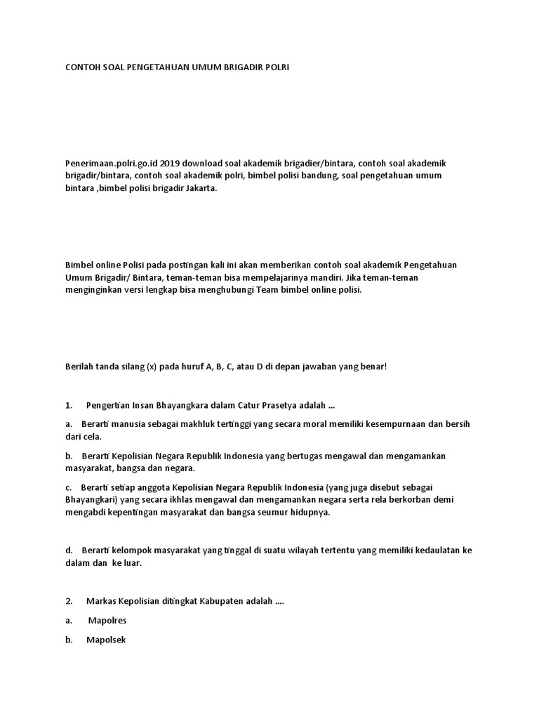 Contoh soal akademik polri. Contoh soal tes akademik polri 2019 tes akademik polri 2019 atau uji akademik tahun ini dilakukan serentak antara 10 11 dan 12 mei 2019. Prediksi soal bahasa inggris tes akademik polri 2020. Iwan s 05 oktober 2019. Soal akademik setukpa polri. Soal akademik tes pengetahuan umum tpu bintara polri. Penerimaanpolrigoid 2020 contoh soal tes pengetahuan umum akpol download soal akademik akpol soal akademik akpol pdf tes akademik akpol contoh soal akademik doc soal tes akpol bimbel polisi.