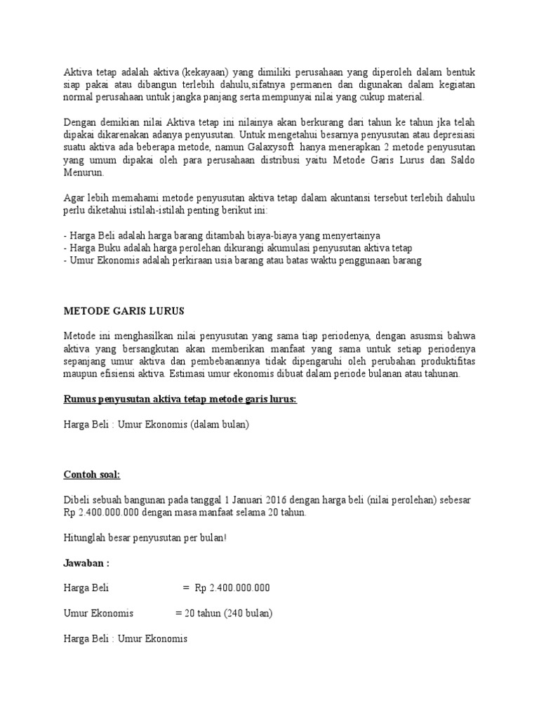 Contoh Perhitungan Dan Jurnal Penyusutan Aset Tetap Metode