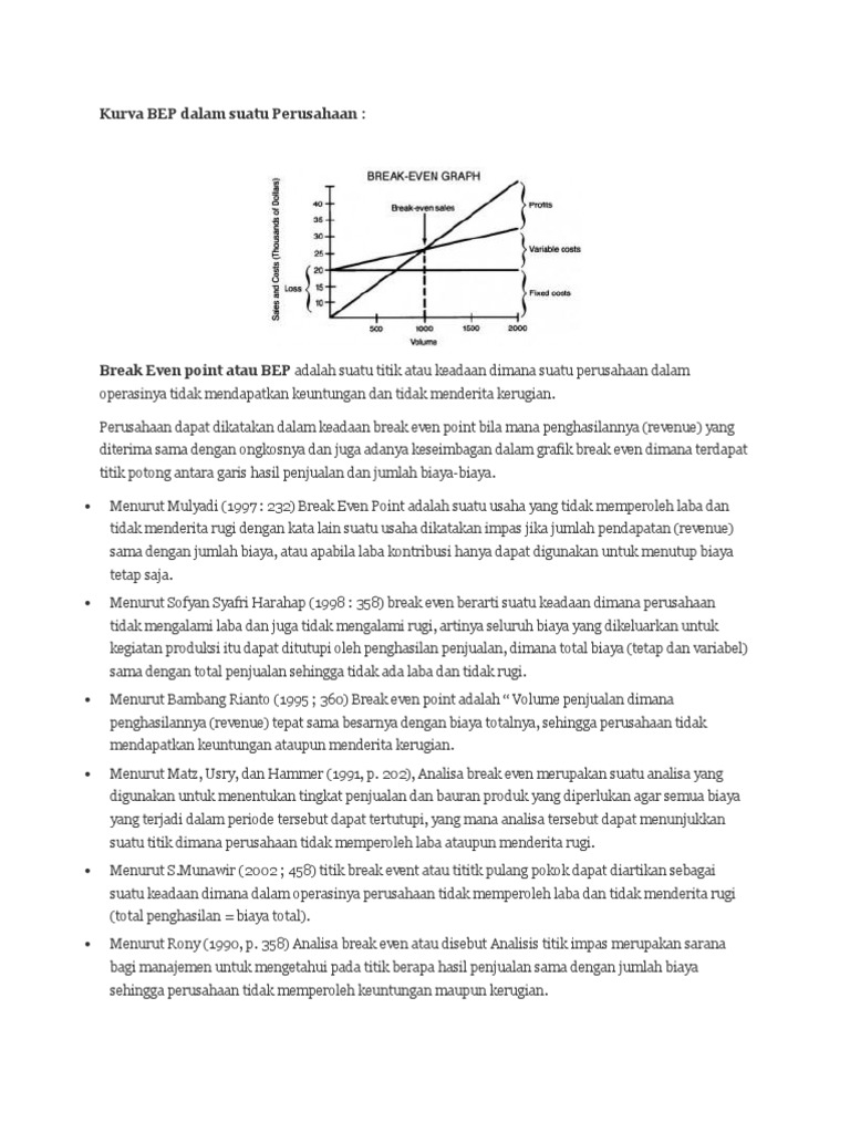 Wigiyanti break even point dan contoh kasus a. Contoh soal break even point dan grafiknya pengertian break even point rumus komponen cara hitung dan contohnya. Itulah contoh soal break even point dan grafiknya yang dapat admin kumpulkan. Break even point diartikan sebagai suatu keadaan atau titik dimana perusahaan dalam kegiatan operasinya tidak memperoleh keuntungan dan tidak mengalami kerugian juga. Harga jual a sebesar rp. Pengertian rumus dan cara menghitung break even point dalam sebuah usaha atau bisnis dipakai suatu ukuran umum dalam menentukan dan menilai keberhasilan manajemen usaha dalam mencapai target penjualan sehingga terjadi keuntungan atau laba maksimal.