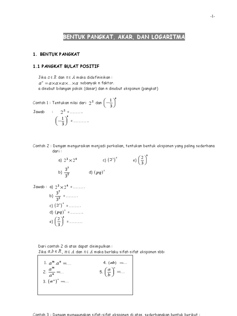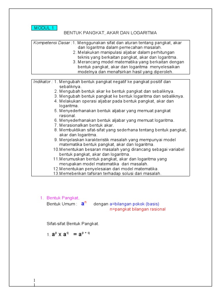 Materi bentuk pangkat bentuk akar dan logaritma yakni bahan matematika yang menyambut siswa pertama kali ketika menginjak kursi sma.