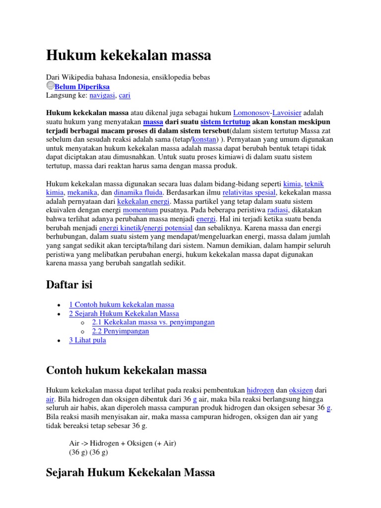 Contoh Soal Hukum Kekekalan Massa Dan Mol Asep Respati