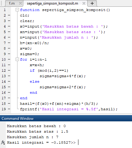 Contoh soal integrasi numerik metode simpson. Metode integrasi numerik adalah suatu cara untuk menghitung aproksimasi luas daerah di bawah fungsi yang dimaksud pada selang yang diberikan. Integrasi numerik metode simpson adalah metode yang digunakan dengan mem fitting persamaan quadratik kedalam tiga point yang melalui fx untuk mengetahui luas area yang berada di bawahnya. Metode numerik integrasi numerik. Admin contoh soal terbaik 2019 mengumpulkan gambar gambar lainnya yang berhubungan dengan contoh soal integrasi numerik metode simpson dibawah ini. Integrasi numerik metode trapezoid dan metode simpson 13. Integral numerik metode trapezoid dan metode simpson posted on june 12 2012 december 16 2016 by rizkipprastio in fisika komputasi integral numerik juga dinamakan quadrature telah menjadi perhatian para ilmuwan sejak abad 18 hingga 19.