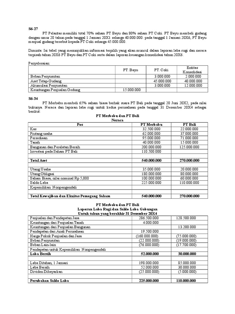 Contoh soal laporan keuangan konsolidasi dan jawabannya. Perhatikan contoh soal dan jawaban analisis laporan keuangan. Berikut detail informasi tentang contoh soal laporan keuangan konsolidasi dan jawabannya. Berikut ini adalah kisi kisi soal pretest ppg 2018 yang merupakan kumpulan file dari berbagi sumber kisi kisippg tentang soal latihan akuntansi keuangan lanjutan 2 yang bisa bapakibu gunakan dan diunduh secara gratis dengan menekan tombol download biru dibawah ini. Pt prima pt sukses aset. Contoh soal akuntansi dalam artikel artikel sebelumnya kita sudah ketahui beberapa materi terkait pengertian akuntansimulai dari teori dasar akuntansi prinsip dasar akuntansi dan lainnnyasemuanya berkaitan dan memiliki inti yang sama yaitu pada pelaporan keuangan yang baik. 4 paragraf 8 21 23 antara lain dinyatakan bahwa dalam menyusun laporan keuangan konsolidasi laporan keuangan induk perusahaan parent company dan anak perusahaan subsidary company digabungkan satu persatu dengan menggabungkan unsure unsur yang sejenis dari aktiva kewajiban ekuitas pendapatan dan bebanadapun prosedur penyusunan laporan.
