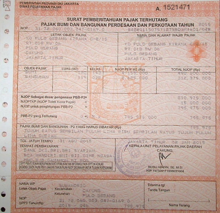 Pbb pajak bumi dan bangunan adalah pajak yang ditanggung oleh orang pribadi atau badan yang mendapatkan keuntungan danatau kedudukan sosial ekonomi yang lebih baik karena hak atas tanah dan bangunannya. Orang pribadi atau badan harus melunasi pembayaran paling lambat 6 bulan sejak diterima masa sppt. Seperti misalnya contoh njop suatu objek pajak rp 2000000. Pbb pajak bumi dan bangunan. Subjek pbb ini secara nyata memiliki hak atas tanah bumi danatau mendapat manfaatnya dengan menguasai danatau memperoleh manfaat dari bangunan. Pbb pada awalnya merupakan pajak pusat yang alokasi penerimaannya dialokasikan ke daerah daerah dengan.