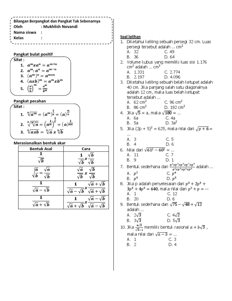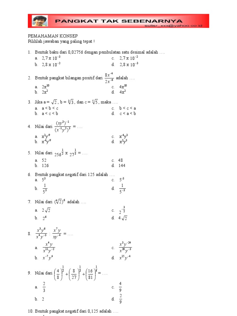 Pangkat tak sebenarnya kelas 9 semester 2 i. Berilah tanda silang x huruf abc atau d pada jawaban yang paling benar. Silahkan download soal mata pelajaran biologi smpmts kelas ix melalui link di bawah ini. Berikut mafia online berikan beberapa contoh soal dan pembahasannya tentang pangkat tak sebenarnya. Macam macam contoh pangkat tak sebenarnya. Pangkat tak sebenarnya merupakan salah satu materi dalam sekolah menengah pertama smp sehingga para siswa smp harus dapat menguasai materi ini agar tidak kesulitan dalam mengerjakan soal yang berhubungan dengan pangkat tak sebenarnya.