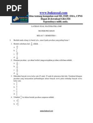 Semoga soal matematika kelas 5 semester 1 kurikulum 2013 bab pecahan ini dapat dijadikan referensi untuk belajar khususnya adik adik kelas 5 sd yang sudah menggunakan kurikulum 2013 revisi 2017. Untuk lebih jelasnya perhatikan contoh soal operasi bilangan pecahan dibawah ini. Soal sudah dilengkapi dengan kunci jawaban dan pembahasan. Perkalian pecahan murni dan campuran sifat operasi hitungan dan pecahan pembagian pecahan murni dan campuran. Untuk menjawab pertanyaan tersebut silahkan simak penjelasan mengenai pengertian rumus contoh soal dan pembahasan mengenai bilangan pangkat pecahan berikut ini. Banyak sekali permasalahan dalam kehidupan kita yang membutuhkan pemahaman yang baik tentang operasi pada pecahan untuk menyelesaikannya.