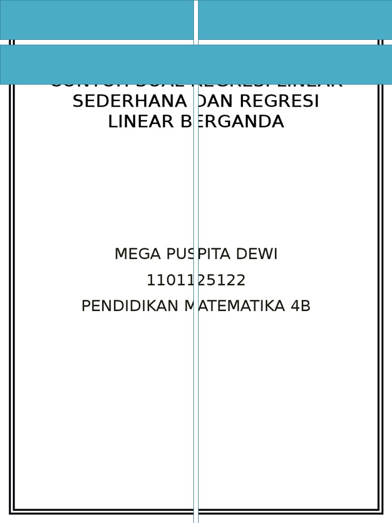 4 replies to tutorial analisis regresi linier berganda dengan spss. Contoh soal regresi berganda. Pengertian dan contoh kasus uji regresi linear sederhana dan berganda regresi merupakan suatu alat ukur yang juga digunakan untuk mengukur ada atau tidaknya korelasi antarvariabel. Kasus regresi berganda judul. Istilahregresi yang berarti ramalan atau taksiran pertama kali diperkenalkan oleh sir francis galton pada tahun 1877. Contoh soal dan pembahasan regresi linear berganda dapatkan link.