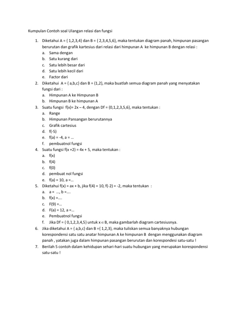 Seperti kisi kisi yang telah dikeluarkan bsnp materi relasi dan fungsi akan kembali muncul di ujian nasional tahun 2020. Contoh soal relasi matematika. Perhaps searching can help. Sahabat kali ini kita akan bertemu dengan relasi dan fungsi pasti masih banyak anak smp yang bingung mana yang relasi dan mana yang fungsi nah maka dari itu kita perlu membahas beberapa soal yang berkaitan. Contoh latihan dan pembahasan soal un 50 soal bahasa indonesia smp. Kesimpulannya setiap relasi belum tentu fungsi namun setiap fungsi pasti merupakan relasi.