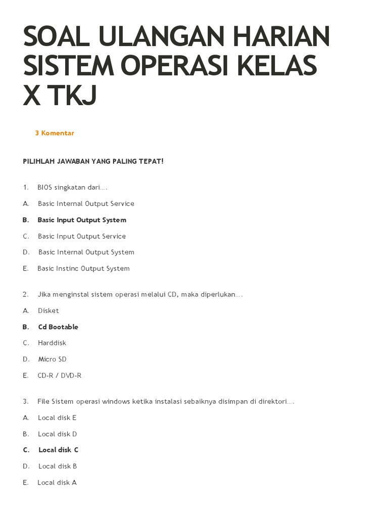Contoh soal sistem operasi. Umumnya sistem operasi ini terdiri atas banyak layanan atau service yang ditujukan untuk melayani pengguna seperti layanan berbagi berkas layanan berbagi alat pencetak printer dns service http service dan lain sebagainya. Home dan boot e. Soal latihan uas sistem operasi 1. Root dan swap d. Kali ini saya akan posting contoh soal pilihan ganda dan esay serta jawabannya. Local disk c d.