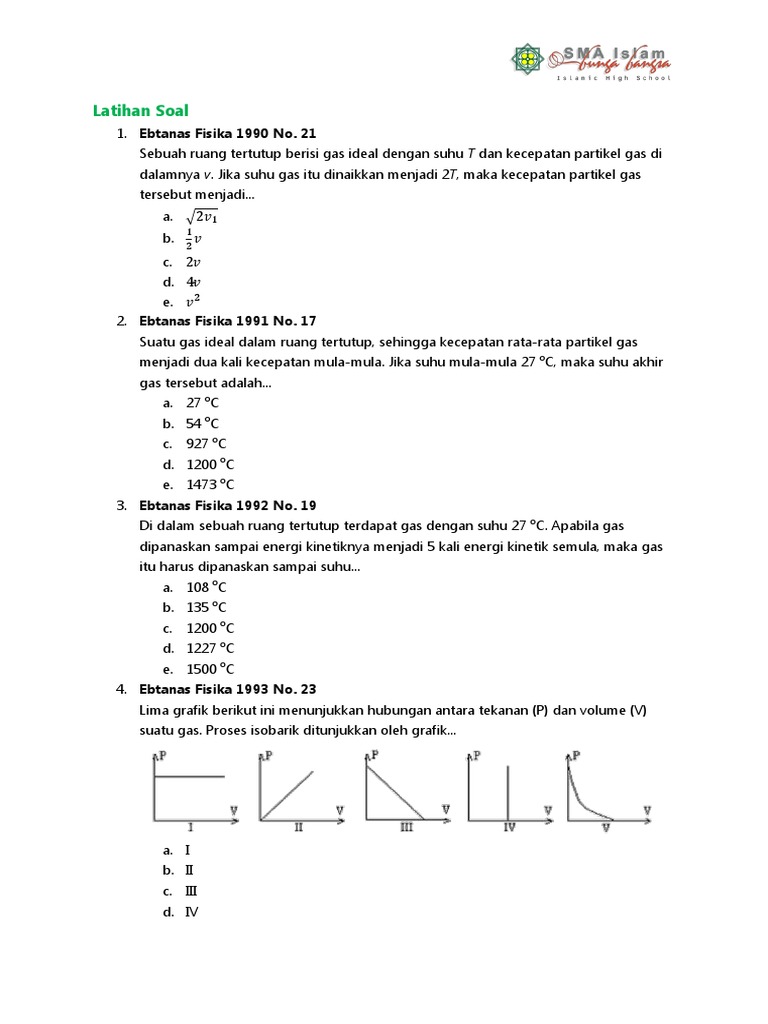 Contoh soal teori kinetik gas. 1 16 gram gas oksigen m 32 grmol berada pada tekanan 1 atm dan suhu 27 o c. Soal dan pembahasan tentang teori kinetik gas. Apabila volumenya mengalami perubahan menjadi 12 kali semula dan suhunya dinaikkan menjadi 4 kali semula maka tekanan gas yang berada dalam sistem tersebut menjadi. Suatu gas ideal sebanyak 4 liter memiliki tekanan 15 atmosfer dan suhu27 o c. 1 sejumlah gas ideal dipanaskan dalam sebuah silinder berpenghisap pada tekanan tetap maka. March 17 2017 admin leave a comment.