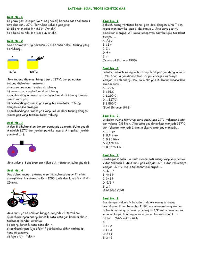 Contoh soal dan pembahasan tentang teori kinetik gas by unknown at 0602 have 0 komentar contoh soal dan pembahasan tentang teori kinetik gas materi fisika 11 kelas 2 sma mencakup penggunaan persamaan gas ideal variasi perubahan volume suhu dan tekanan pada sistem gas ideal. Tentukan volume gas jika. Apabila tekanan gas dinaikkan menjadi 4 kali semula dan volume gas tetap maka perbandingan energi kinetik awal dan energi kinetik akhir gas adalah. Gas ideal berada dalam wadah tertutup pada mulanya mempunyai tekanan p dan volume v. Gas ideal berada dalam ruang tertutup dengan volume v tekanan p dan suhu t. Contoh soal teori kinetik gas dan pembahasan contoh soal teori kinetik gas 1.