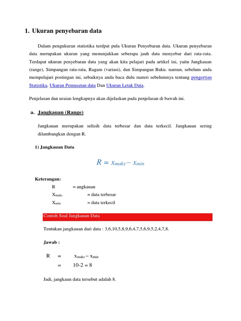 Penjelasan rumus dan contoh soal jangkauan simpangan ragam terlengkap ukuran penyebaran data. Statistika adalah pengetahuan yang berhubungan dengan cara mpenyusunan data penyajian data dan penarikan kesimpulan mengenai suatu keseluruhan berdasarkan data yang ada pada bagian dari keseluruhan tadi.
