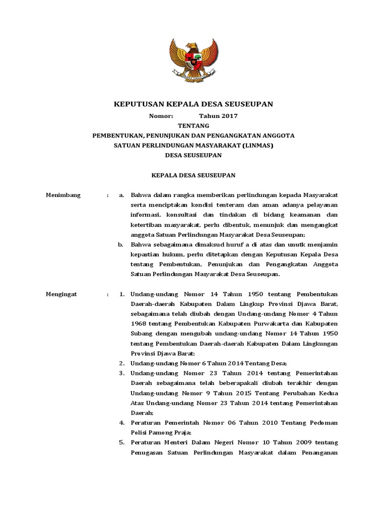Bahwa berdasarkan pertimbangan sebagaimana dimaksud dalam huruf a huruf b dan huruf c perlu menetapkan keputusan kepala desa tentang penetapan penerima bantuan langsung tunai blt dana desa. Contoh surat keputusan kepala desa aparat desa atau lebih tepatnya seorang kepala desa juga seringkali menggunakan surat keputusan.
