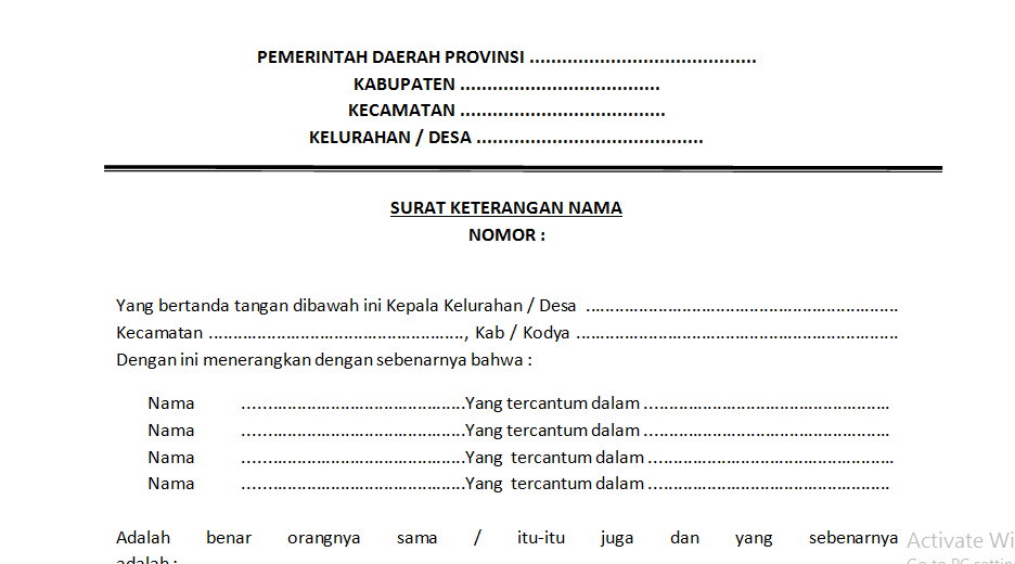 Contoh surat keterangan beda nama. Contoh akta pendirian perkumpulan. Surat keterangan beda nama biasanya digunakan untuk keperluan penting yang sifatnya menyangkut data data pribadi misalnya urusan perbankan administrasi kependudukan keperluan pendaftaran atau urusan lain yang mendesak. Namun dalam kasus yang sering kali kita temui adalah ketidaksamaan dalam penulisan nama dan tanggal lahir. Raya payakumbuh suayan km 6 sariek laweh kode pos 26252. Nah untuk melengkapi pembahasan kita sebelumnya mengenai surat keterangan kesalahan perbedaan penulisan maka kali ini akan kita bahas secara khusus tentang. Surat pernyataan beda nama.