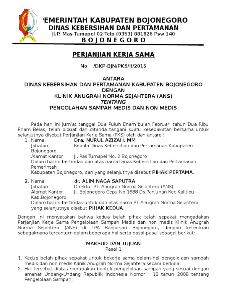 Contoh perjanjian jasa pengelolaan limbah medis by. Download surat permohonan pengangkutan sampah word. Contoh surat perjanjian kerjasama pengelolaan limbah medis ini saya dapatkan dimana pada saat itu seorang dokter yang baru akan membuka prakteknya di daerah tempat tinggal saya. Dokter tersebut mendatangi saya dengan membawa contoh surat perjanjian kerjasama pengelolaan limbah medis ini. Download contoh surat kerjasama bagi hasil doc.