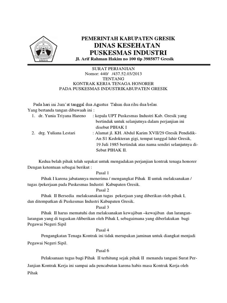 Contoh surat perjanjian kontrak kerja tenaga honorer. Contoh surat perjanjian kerja pada aktifitas kerja terdapat surat perjanjian yang digunakan untuk membuat kesepakatan antar pihak pihak yang terlibat dalam kerjasama. Dalam daftar isi silahkan pilih dan klik contoh surat yang diinginkan anda akan diarahkan ke link untuk mendownload surat tsb. Seperti halnya surat lamaran pada umumnya surat lamaran kerja bagi tenaga honorer pemda ini juga memuat tujuan surat dan data diri pelamar kerja. Nomor telepon darurat di kota batam. Contoh surat kontrak kerja surat kontrak kerja adalah salah satu dokumen penting yang dimiliki oleh seorang karyawan pegawai di sebuah perusahaan. Contoh surat pengalaman kerja working experience.