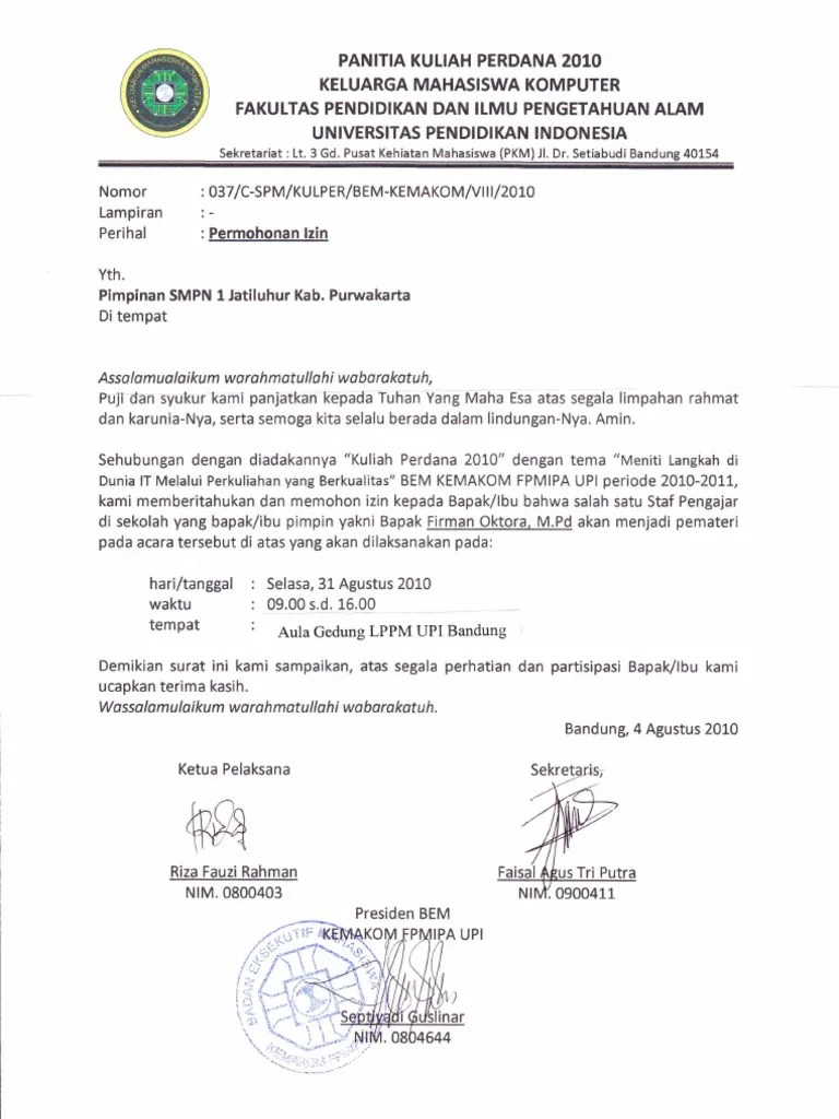 Contoh surat permohonan narasumber pelatihan. Karusel sebelumnya karusel berikutnya. Lainnya dari chompey sibarani. Sk fk tksk 2013. Surat permohonan narasumber merupakan sebuah surat yang di dalamnya berisi permohonan atau permintaan kepada seseorang mengenai apakah orang tersebut bersedia untuk menjadi narasumber di sebuah acara tertentu atau tidaksurat permohonan yang diajukan ini bukan hanya untuk acara yang berhubungan dengan instansi pemerintahan melainkan juga biasanya dibuat dalam hal hal yang berkaitan dengan. 022 690210 fax. Departemen pendidikan dan kebudayaan sma negeri 60 kota bandung jalan asem jawa no.
