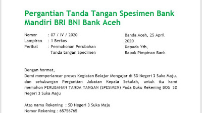 Demikianlah contoh surat permohonan penambahan specimen bank bni bri mandiri bank aceh. Kami yang bertanda. Untuk jelasa sobat bisa liat.