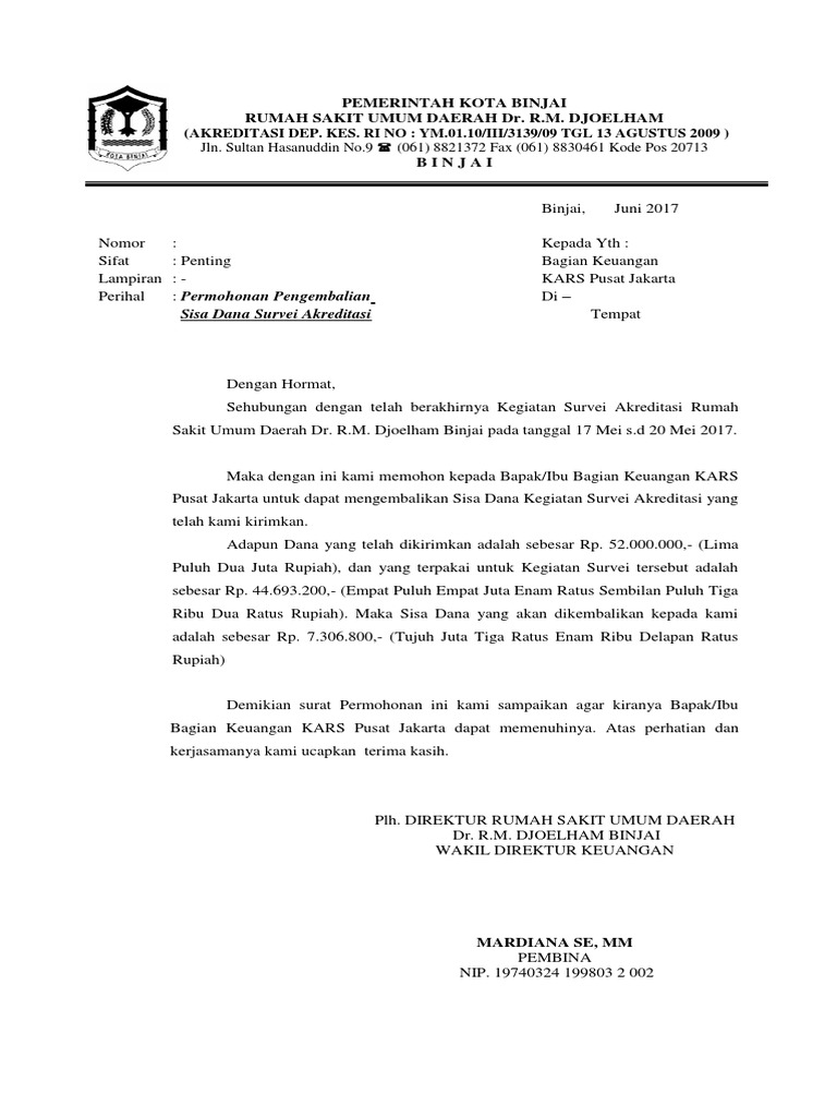 Contoh surat permohonan pengembalian dana. Surat juga menunjukkan penghormatan kepada orang yang ditujukan. 2 2 upvotes mark this document as useful 1 1 downvote mark this document as not useful embed. Anda harus menulis surat permohonan dengan tata cara penulisan yang baik dan benar seperti yang kami contohkan. Itulah beberapa contoh surat permohonan untuk berbagai kepentingan yang dapat kamu jadikan rujukan dalam membuat surat permohonan. 15 contoh surat permohonan dana paling lengkap aktivitas surat menyurat dalam lembaga atau organisasi tentunya tidak bisa ditinggalkan. Carousel previous carousel next.
