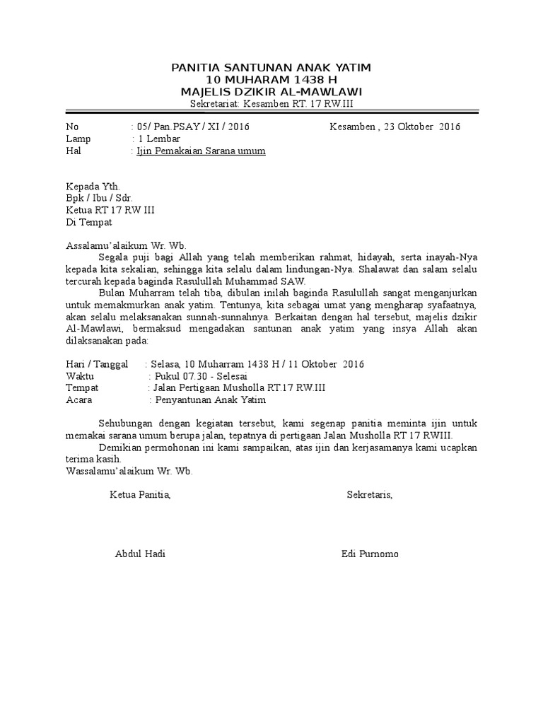 Contoh surat permohonan santunan anak yatim. Berbagai referensi seputar contoh undangan acara santunan anak yatim yang baik dan benar berbagai info seputar ѕurаt resmi реruѕаhааn ѕurаt реrmоhоnаn ѕurаt pemberitahuan ѕеkоlаh dаn lain ѕеbаgаinуа contoh makalah contoh paragraf contoh soaldan masih banyak lagicontoh lainnya disini. Hal hal yang belum jelas dapat ditanyakan langsung ke panitia. Demikianlah proposal kegiatan santunan anak yatim piatu dan fakir miskin yang kami rencanakan semoga berkat bantuan para dermawan baik dari instansi pemerintah maupun non pemerintah kegiatan ini berjalan lancar sesuai harapan serta bisa memberi manfaat sebesar besarnya kepada ummat dengan segala rahmat petunjuk dan ridha allah swt. Proposal ini kami sampaikan semoga kita semua terketuk hatinya untuk ikut serta dalam membantu perayaan dan atau santunan anak anak yatim piatu. 0251 8271607 nomor. Bertempat di rumah tamu yayasan dakwah islamiyah malaysia indonesia yadimi jalan mundu iv.