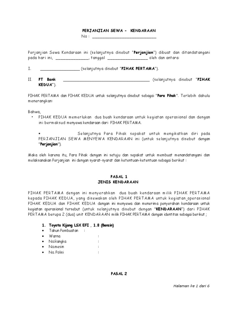 Klik di sini untuk download. Walaupun anda adalah pemilik penyewaan mobil perorangan tidak ada salahnya untuk membuat surat perjanjian sewa mobil layaknya seperti perusahaan rental mobil profesional. Menurut kbbi sewa berarti pemakaian sesuatu dengan membayar uang sedangkan menyewa berarti memakai meminjam menampung dengan membayar uang sewa sewa menyewa adalah persetujuan antara pihak yang. Hal yang penting yang harus ada dalam surat perjanjian ini adalah. Berbagai alasan yang melatar belakangi sewa menyewa rumah biasanya karena faktor ekonomitidak semua kepemilikan tempat tinggal di indonesia dilakukan dengan cara membeli beberapa dilakukan dengan menyewa. 15 contoh surat perjanjian sewa mobil paling lengkap pada dasarnya sewa menyewa mobil bisa dilakukan secara pribadi atau melalui jasa atau usaha rental mobil.