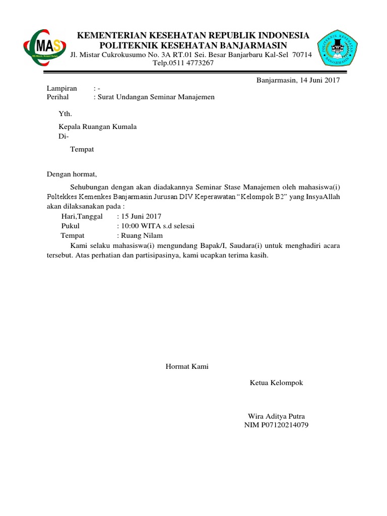 Contoh surat undangan seminar versi ms. Keduanya memiliki karakteristik yang berbeda dan digunakan untuk keperluan yang tidak sama. Contoh surat undangan seminar memang banyak sekali saat ini seminar maka kami akan menyampaikan untuk anda semua untuk bisa membuat surat undangan untuk seminar sehingga saat anda ada seminar di kampus anda bisa anda bikin dengan cara yang kami sampaikan dibawah ini mudah dan simpel sekali dini bisa menjadi contoh udangan seminar yang cocok untuk acara seminar anda nantinya. Surat undangan dibuat banyak tidak hanya untuk satu orang dan penandatangan surat biasanya pake cap agar lebih menghemat waktu. Download contoh surat undangan seminar doc itu tadi contoh surat undangan seminar yang dapat kami berikan pada kesempatan kali ini kita akan memberikan contoh surat yang lain beserta penjelasannya pada artikel selanjutnya. Sedangkan untuk susunan kata sebenarnya bisa diubah lagi sesuai dengan keinginan dan kebutuhan.