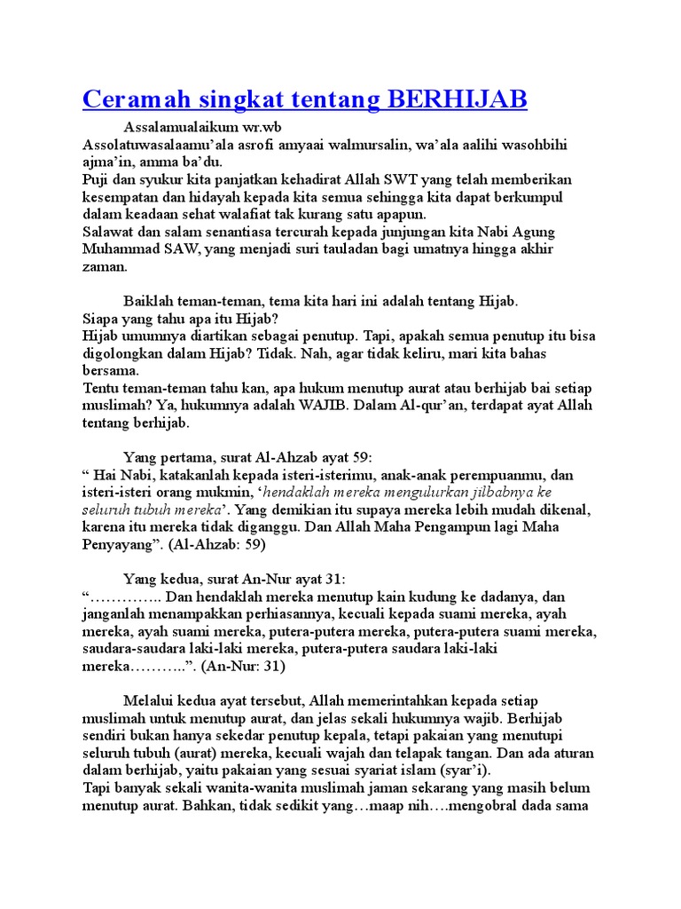 Contoh teks ceramah singkat. Boleh copy paste tapi jangan lupa cantumkan sumber. Dalam kesempatan kali ini marilah kita panjatkan puji syukur kehadirat allah swt yang telah memberikan kita nikmat sehat nikmat iman serta hidayahnya kepada kita selaku hamba nya sehingga dapat berkumpul di tempat ini dengan keadaan sehat. Contoh ceramah singkat tentang sabar. Di bawah ini adalah beberapa contoh teks ceramah singkat yang paling populer dibawakan oleh para ustad atau kiyai antara lain sebagai berikut. Contoh ceramah singkat. Terkadang dalam suatu masyarakat terdapat beberapa persoalan yang jarang ditemukan di dalam teks tulisan.