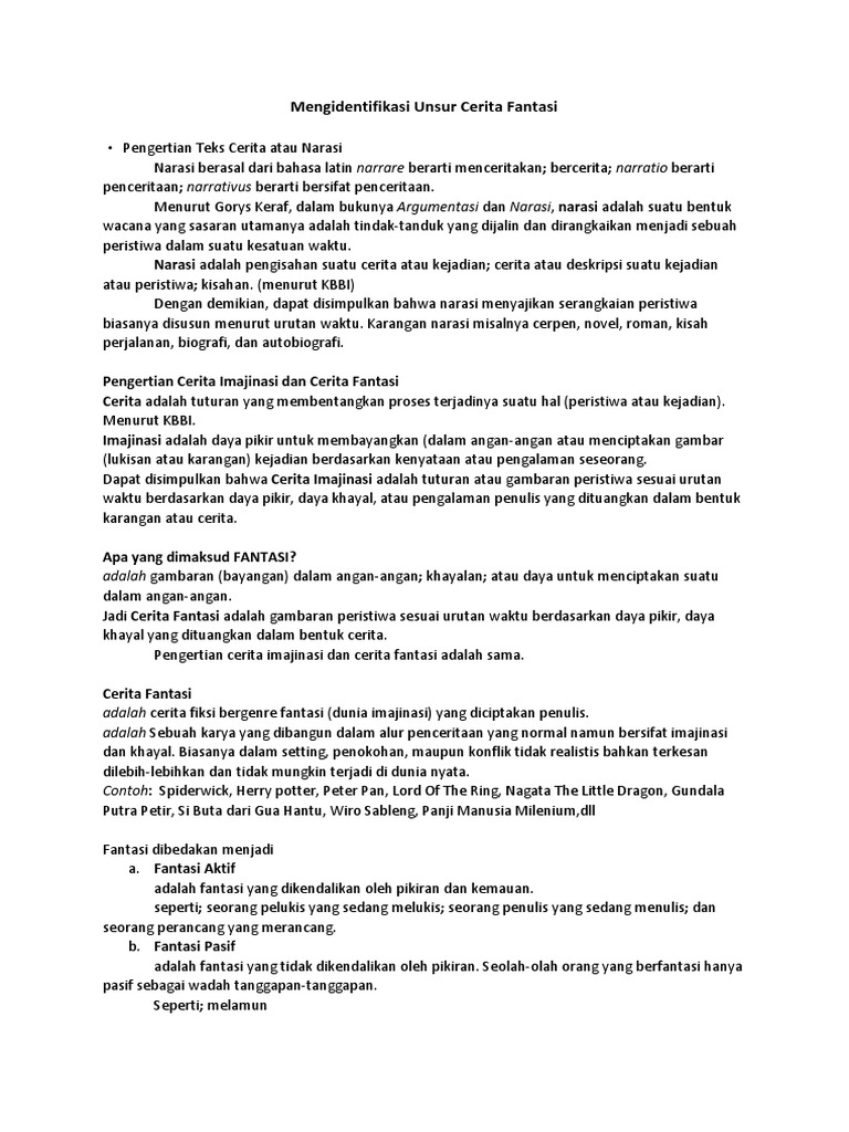 Contoh teks fantasi dari indonesia misalnya cerita cerita daerah tentang asal usul wilayah. Narasi merupakan cerita fiksi yang berisi perkembangan kejadian atau peristiwa. Struktur teks cerita fantasi. Ada banyak sekali contoh teks cerita fantasi dari luar maupun cerita cerita daerah. Pengertian teks cerita fantasi menurut para ahli. Ada juga beberapa dari teks cerita fantasi yang hanya ada konflik atau yang disebut dengan imajinatif dari sang penulis.
