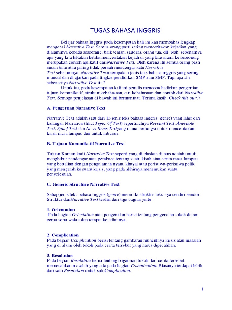 Baca juga materi terkait. Materi narrative text beserta contoh teks dan soal latihan.