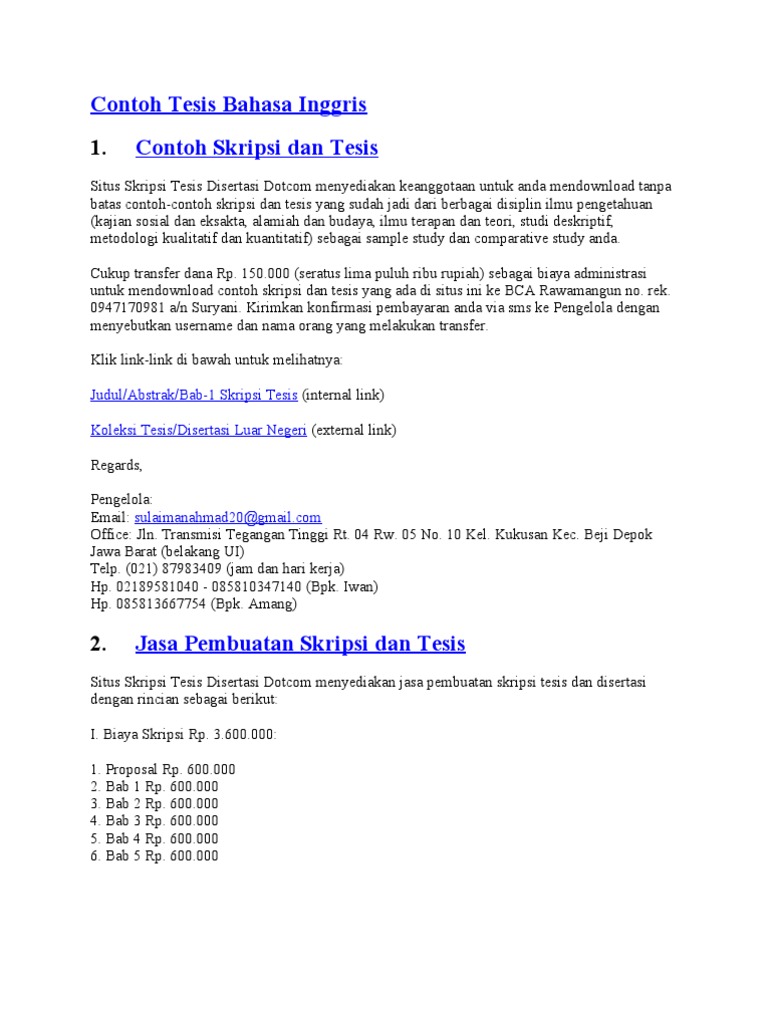 Contoh tesis bahasa indonesia. Tesis yang kami tawarkan disini merupakan hasil penelitian mahasiswa dari berbagai perguruan tinggi terkemuka dari seluruh indonesia. Tesis 4 tutorial 8 uncategorized 3 kumpulan karya tulis. Contoh tesis bahasa indonesia. Dalam daftar tersebut tersaji berbagai judul untuk contoh tesis bahasa indonesia pada tahun 2009. 1000 expression paling umum ahok satu putaran alamat e journal artikel blue sky cerpen bahasa inggris jelek banget contoh abstrak tesis contoh abstrak tesis berbahasa arab contoh amanah pengasuh pesantren contoh bab 1 tesis contoh buku perizinan dan peraturan pesantren contoh ikrar santri contoh isi surat izin pulang pesantren contoh jurnal tesis contoh kop surat contoh novel jelek banget. Tesis keefektifan pembelajaran matematika dengan menggunakan metode pembelajaran think talk write ttw ditinjau dari motivasi belajar siswa.