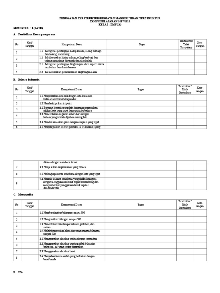 Contoh format tugas mandiri terstruktur dan tugas mandiri tidak terstruktur by. Penugasan ter sruktur dan mandiri tidak terstruktur penugasan tersruktur dan tidak terstruktur ini sering dilakukan di lembaga lembaga pendidikan sekolah atau di tempat pelatihan. Contoh format tugas mandiri terstruktur dan tugas mandiri tidak terstruktur. Semua penugasan tersebut harus tercatat di setiap kelas dan jenjang. Tugas mandiri terstruktur dan tidak terstruktur infoguru22 thursday 8 november 2018 tugas mandiri terstruktur dan tidak terstruktur edit tugas mandiri terstruktur dan tugas mandiri tidak terstruktur di sini kami telah membagikan format dan bentuk yang sudah jadi dalam format office words barangkali yang membutuhkan silahkan dipilih pada menu berikut ini. Contoh tugas terstruktur dan tidak terstruktur sd smp sma ini akan menjadi topik bahasan saya pada postingan kali ini.