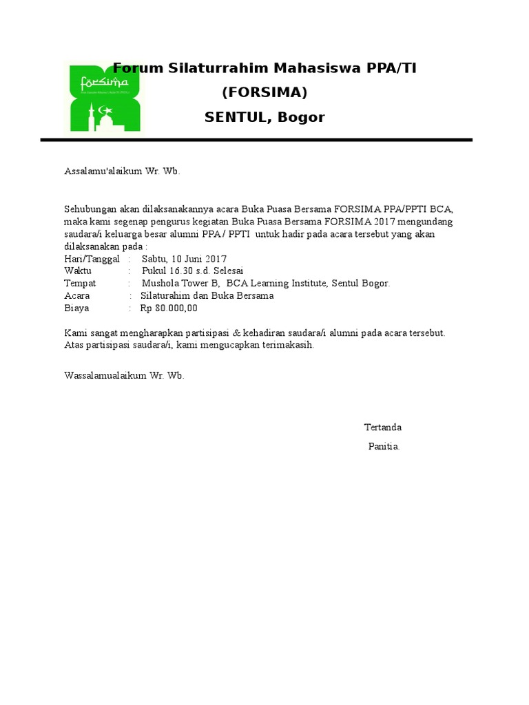 Contoh Surat Undangan Buka Puasa Bersama Himpunan Mahasiswa