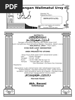 Bagi anda yang masih bingung soal pembuatan undangan berikut ini akan diberikan beberapa contoh desain yang unik. Berikut contoh undangan walimatul ursnya. Download undangan walimahnya klik disini download disini contoh undangan tahlilnya seperti. Karena ini bukan merupakan suatu surat yang resmi maka bisa kita menggunakan bahasa yang bebas asal masih dalam lingkup sopan mudah dimengerti dan dipahami. Silahkan anda download contoh undangan walimatul hamli 4 dan 7 bulan jenis file word 2007 yang bisa diedit sesuai dengan selera dan langsung saja ke tkp.