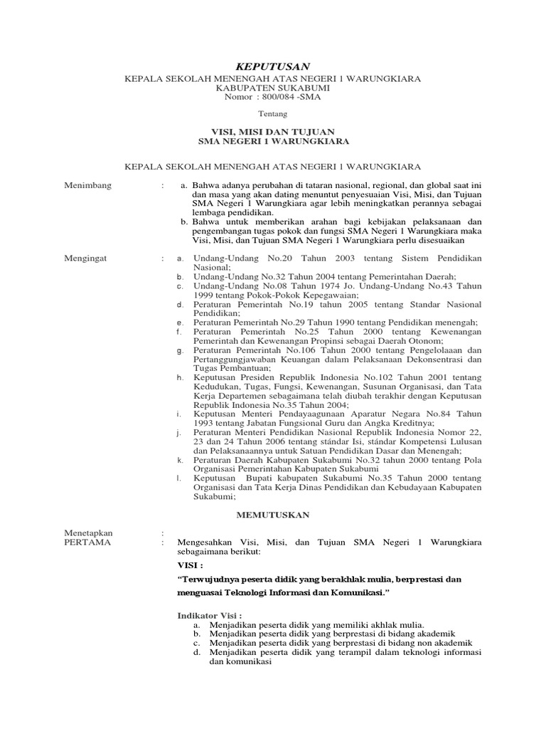 Contoh visi misi sekolah menengah atas. Visi sekolah dijadikan sebagai cita cita bersama warga sekolah dan segenap pihak yang berkepentingan pada masa yang akan datang mampu memberikan inspirasi motivasi dan kekuatan pada warga sekolah dan segenap pihak yang berkepentingan. Penjelasan dan contoh visi misi dan tujuan sekolah. Beserta tips membuat visi misi osis untuk anggota dan ketua osis. Menjadikan osis sebagai sarana penampungan kreativitas inspirasi dan aspirasi siswa juga meningkatkan sekolah sebagai sekolah yang bermutu berakhlak mulia tampil beda jujur adil dan disiplin b. Smaasza terbilang 2015 m i s i meningkatkan kemampuan dan keberkesanan program dan aktiviti sekolah untuk melahirkan individu yang berilmu beriman beramal berakhlak mulia berkebolehan dan berwawasan moto bersama mencipta kegemilangan slogan. Salam dari saya mantan ketua osis sma negeri 2 balikpapan periode 20132014.