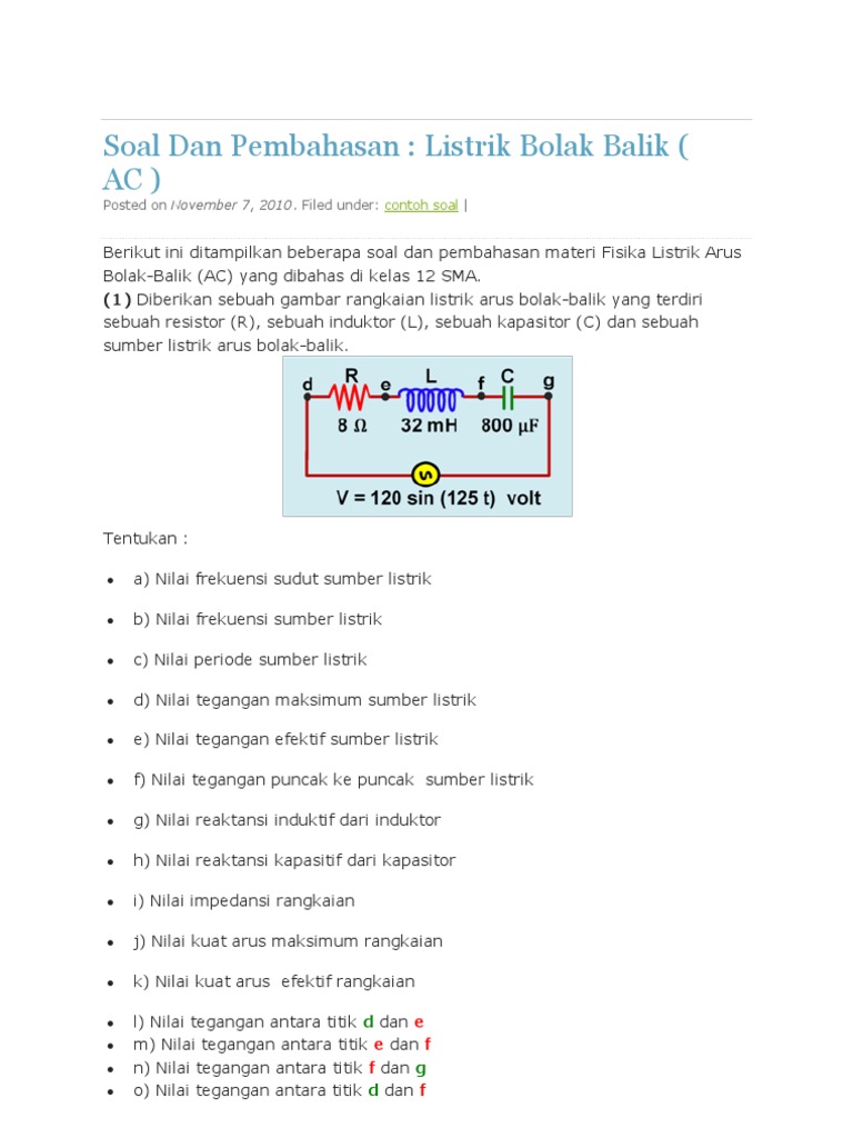 1 diberikan sebuah gambar rangkaian listrik arus bolak balik yang terdiri sebuah resistor r sebuah induktor l sebuah kapasitor c dan sebuah sumber listrik arus bolak balik. Kumpulan soal dan pembahasan fisika listrik arus bolak balik arus dan tegangan bolak balik 02. Kumpulan soal dan pembahasan fisika listrik arus bolak balik arus dan tegangan bolak balik 01. Berikut ini adalah contoh soal ukk smp kelas 7 8 yang merupakan kumpulan file dari berbagi sumber administrasicontoh soalpendidikan dan guru tentang contoh soal un arus bolak balik yang bisa bapakibu gunakan dan diunduh secara gratis dengan menekan tombol download biru dibawah ini. Arti dari 220 v ac 60 w.